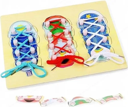 The Lacing Board (Shoe / Animal) is a fine motor skill development toy designed to help children strengthen finger coordination and hand–eye control through engaging threading activities. By lacing strings through pre-punched holes, kids improve grip strength, focus, and bilateral coordination while enjoying playful designs like shoes or animals. This hands-on learning tool supports early skill development and is ideal for toddlers, preschoolers, and early learners at home or in classroom settings.